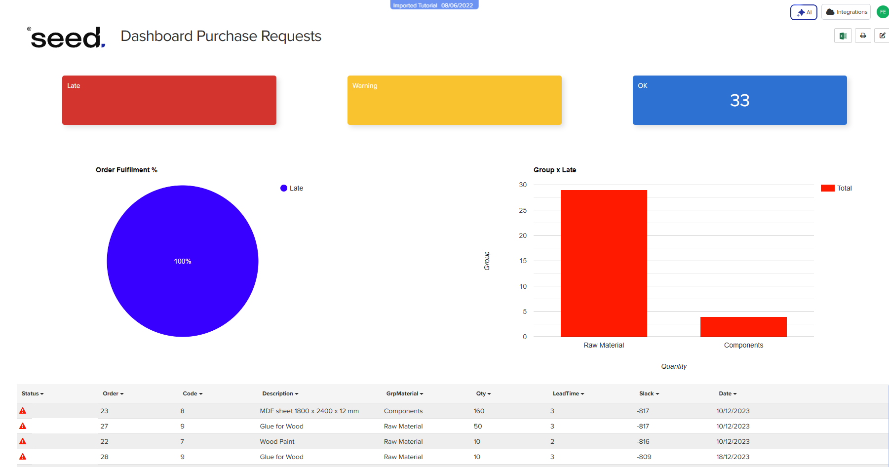 Acompanhe a disponibilidade de materiais baseada na sequência real. Identifique faltas antecipadamente.